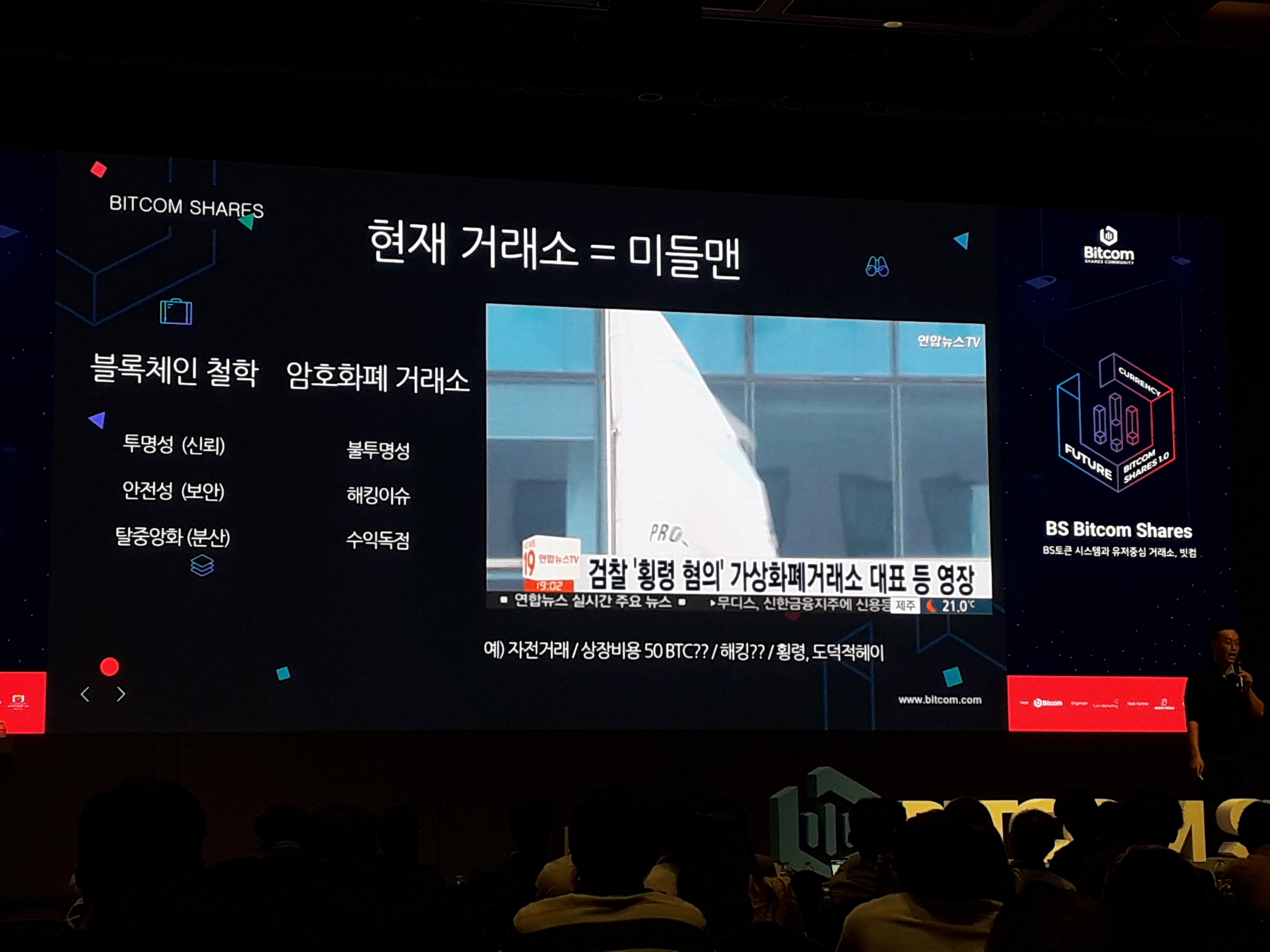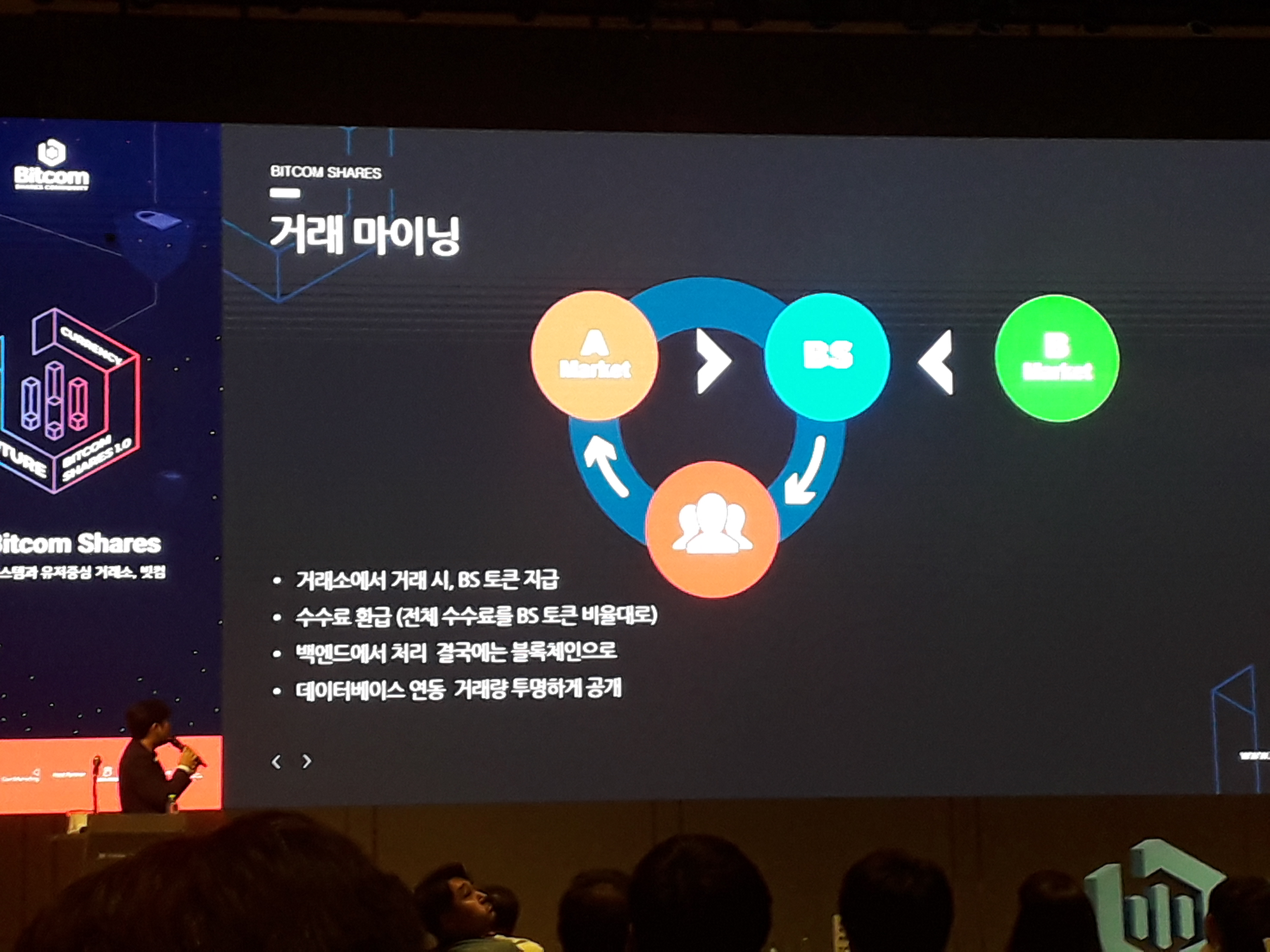 'BS 토큰시스템과 유저중심 거래소 빗컴' 에 대한 소개가 있었습니다.
