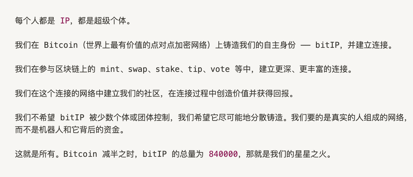 这将建立一个相互连接的网络,人们在 mint、swap、stake 等操作中建立连接,并使得 bitIP 的去中心化信用分在连接中形成。
