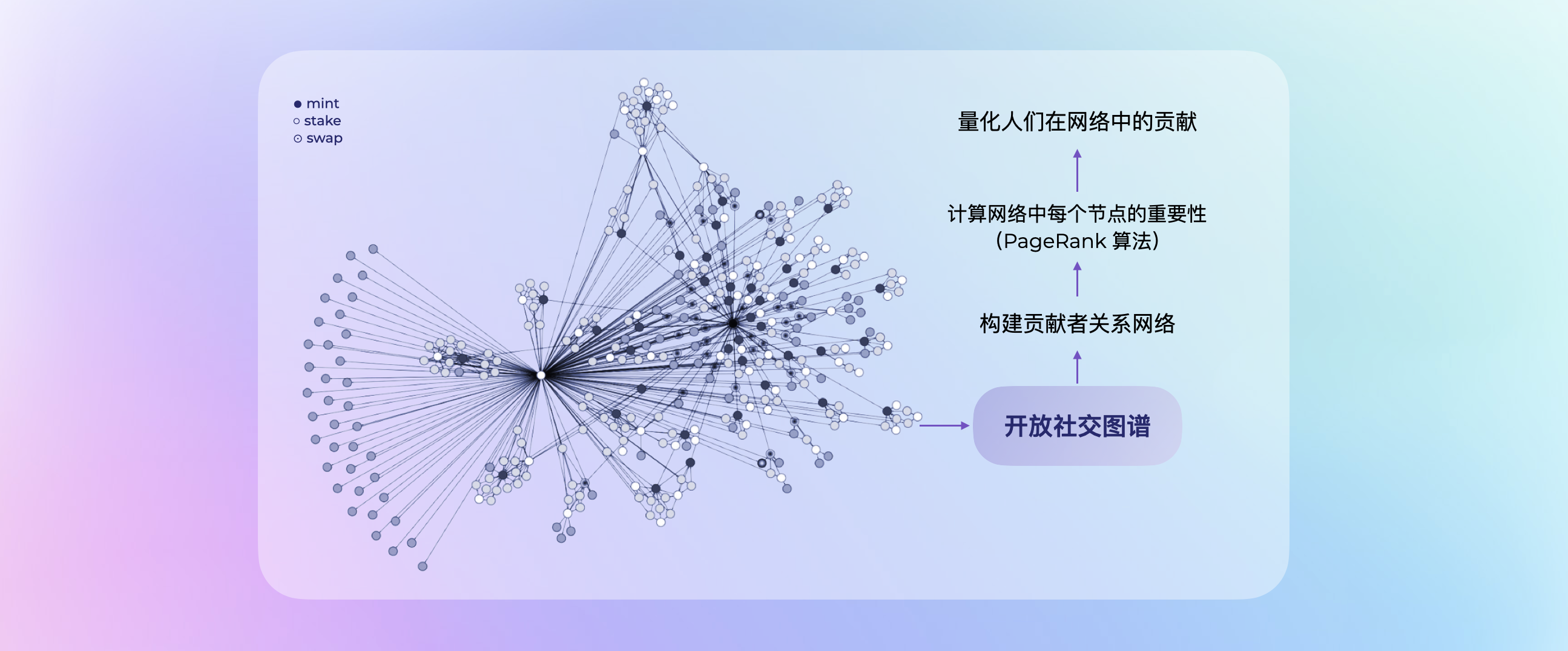 在此基础上,我们在参与区块链上的操作(mint、swap、stake)过程中,建立连接,形成网络 ②。
