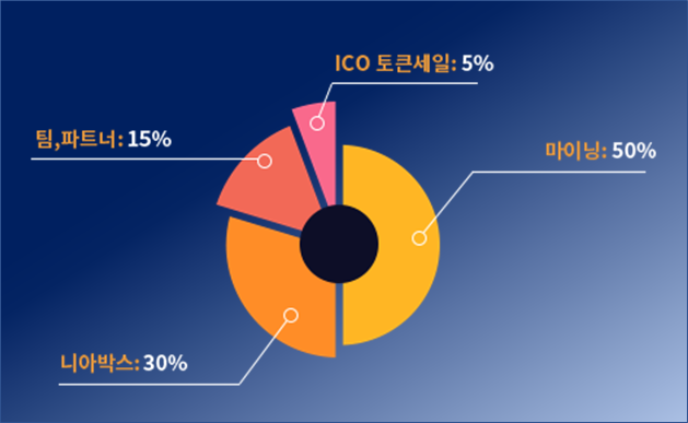 상장 시 유통량 : 상장 시 1억개의 NIA 토큰이 유통되며 50%가 ICO 물량