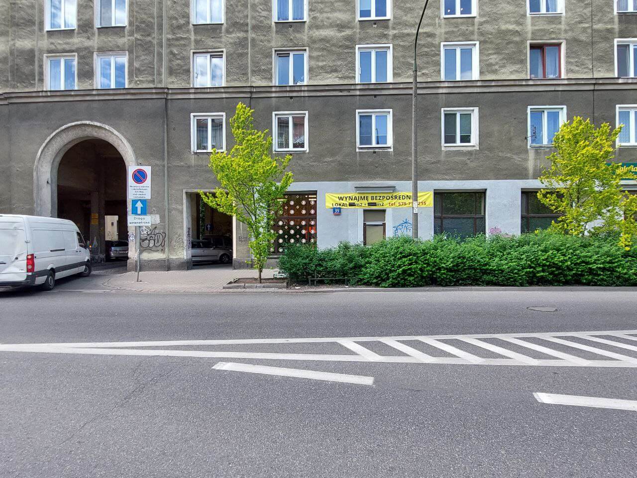 Widok na bitomat Bitcoin na ulicy Płockiej w Warszawie z przeciwnej strony ulicy: