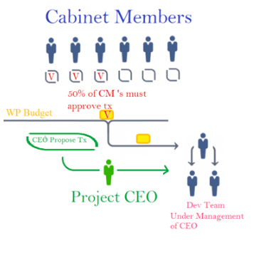 By having the Cabinet manage worker proposals the actual development team is held to a higher standard and given speedy effective guidance. The Cabinet's Middle Management services ensure that an unfit contractor would not be paid and replacements would be found by Cabinet and Project Manager as quickly and safely as possible. Middle Management means a more efficient allocation of the budget, and a saving on Reserve Pool Spending.