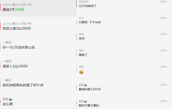 QOS粉丝群中怨声载道,他们不仅质疑QOS项目是否已经凉凉,同时也更加怀疑张健和Fcoin才是真正将用户玩弄于股掌的幕后黑手。