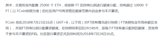 这样的猜测并非毫无根据,Fcoin除了为QOS提供了一个可供交易的场所,同时还担任了定向配售QOS代币的角色,Fcoin曾在一份公告中表示,凡是持有FCoin代币FT总量在1万以上的用户,均有资格在额度范围内自由参与本次募资,募资比例1ETH:20000 QOS,对于QOS的配售Fcoin没有公开招募,而是将镰刀伸向了自己的用户。