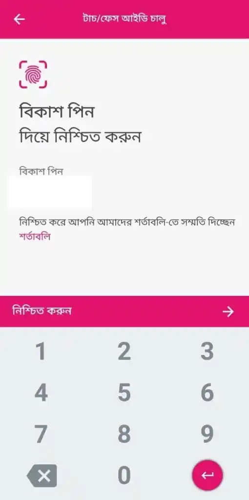 বিকাশ অ্যাপে বায়োমেট্রিক লগিন ফিচার চালু করার নিয়ম