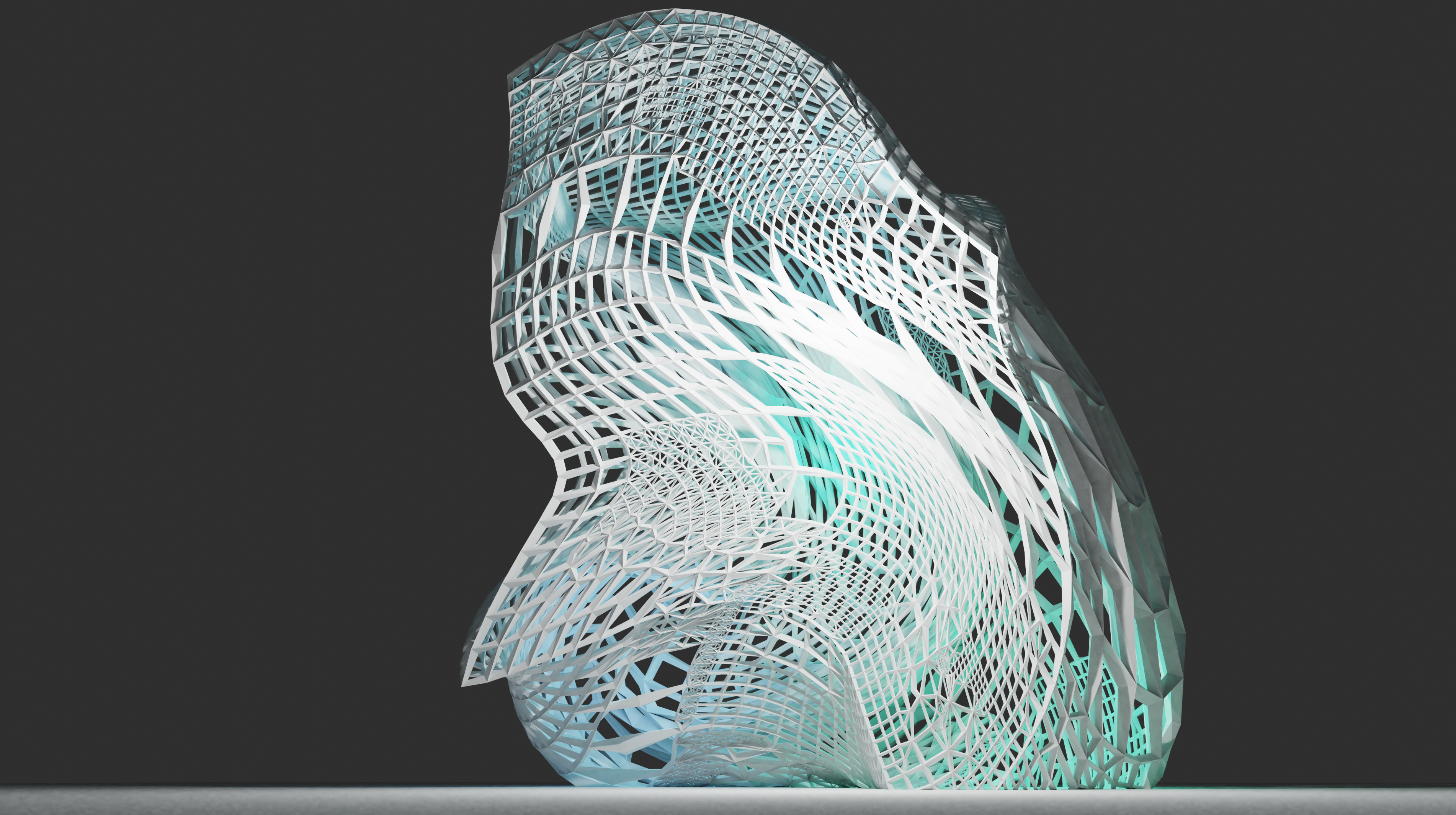 It was pretty simple to make, even if it looks a little complex. I just subdevided a cube around 12 times or so, I turned proportional editing on and grabbed different edges and verts and rotated them randomly. Then I added a wireframe modifier and some lights and boom! It's been fun learning blender when all I knew how to use before was CAD. :)