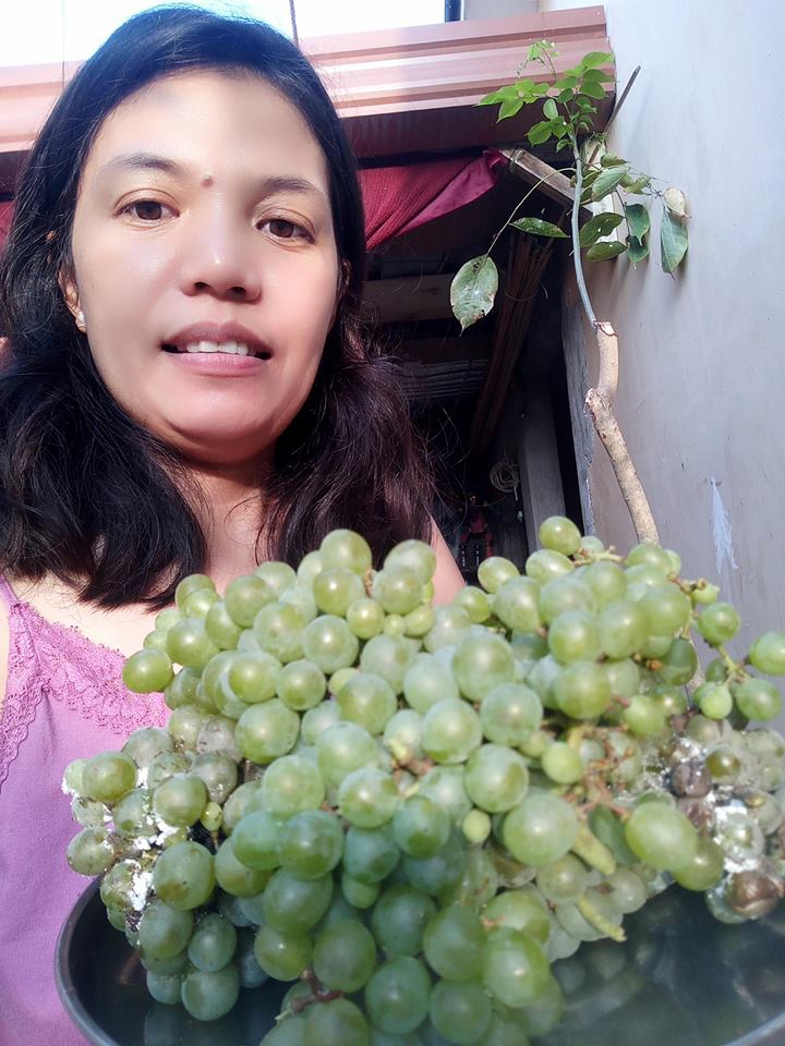 I believe in a saying that "What you sow is what you reap". I think it is true literally we plant a grape vine and it grew healthy and it bears a lot of fruits. This is the day we will harvest our grape fruits. Here are the fruits that we harvested. It is my first time in my life that in reality I will harvest the fruits that we waited for a long time. We shared these grapes to our friends and neighborhood because the blessed person are the giver not the getter.