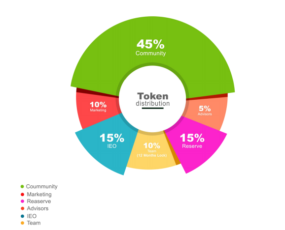 ● Community: 45% (Community tokens are comprised as; free traded ‘swap tokens’, airdrops,bounties and future community events tokens)