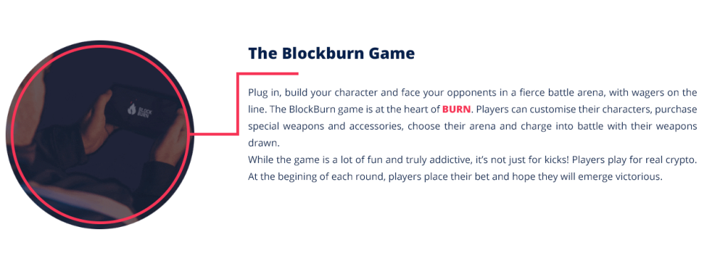 The game network implements a number of functions that will incentivize and encourage players to hold and use more BURN tokens, produce a more complete playing experience for users and contribute to the overall value of the BURN tokens.