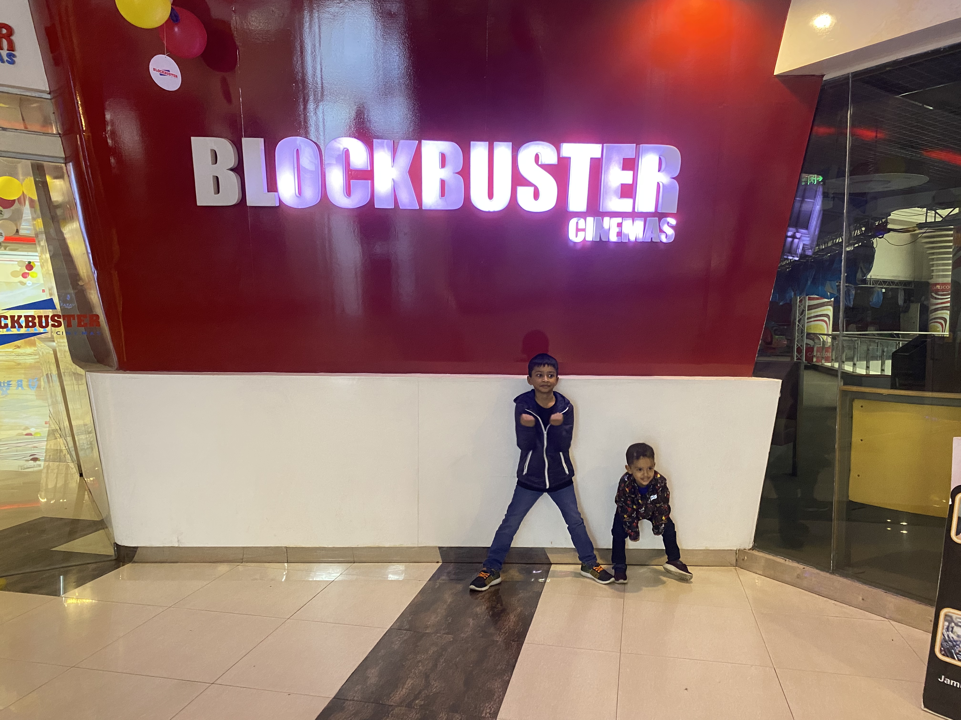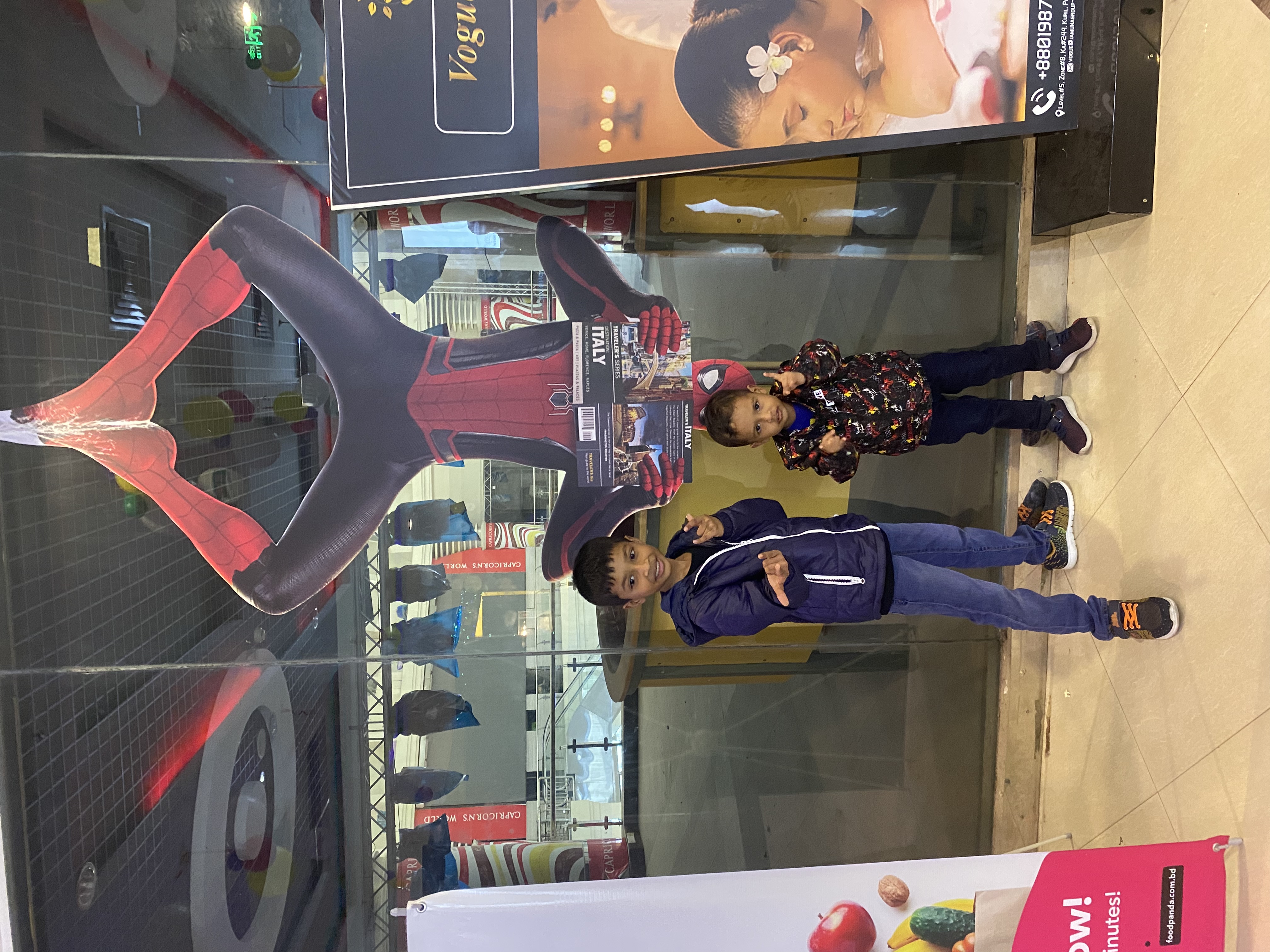 আগে যে ছবিগুলো দেখেছেন ওখানে যে কেউ ঢুকতে পারে। এইখান থেকে সিনেমা হলে ঢোকার জন্য টিকিট লাগে। ব্লকবাস্টার সিনেমা লেখার জায়গা আমার দুই ছেলে আবার দাঁড়িয়ে ছবি তুললো। পাশে একটি স্পাইডারম্যান এর ছবি ছিল। আমার ছোট ছেলে তো সেখানে গিয়ে নিজেই স্পাইডারম্যানের মতো দাঁড়িয়ে কয়েকটি ছবি তুললো।