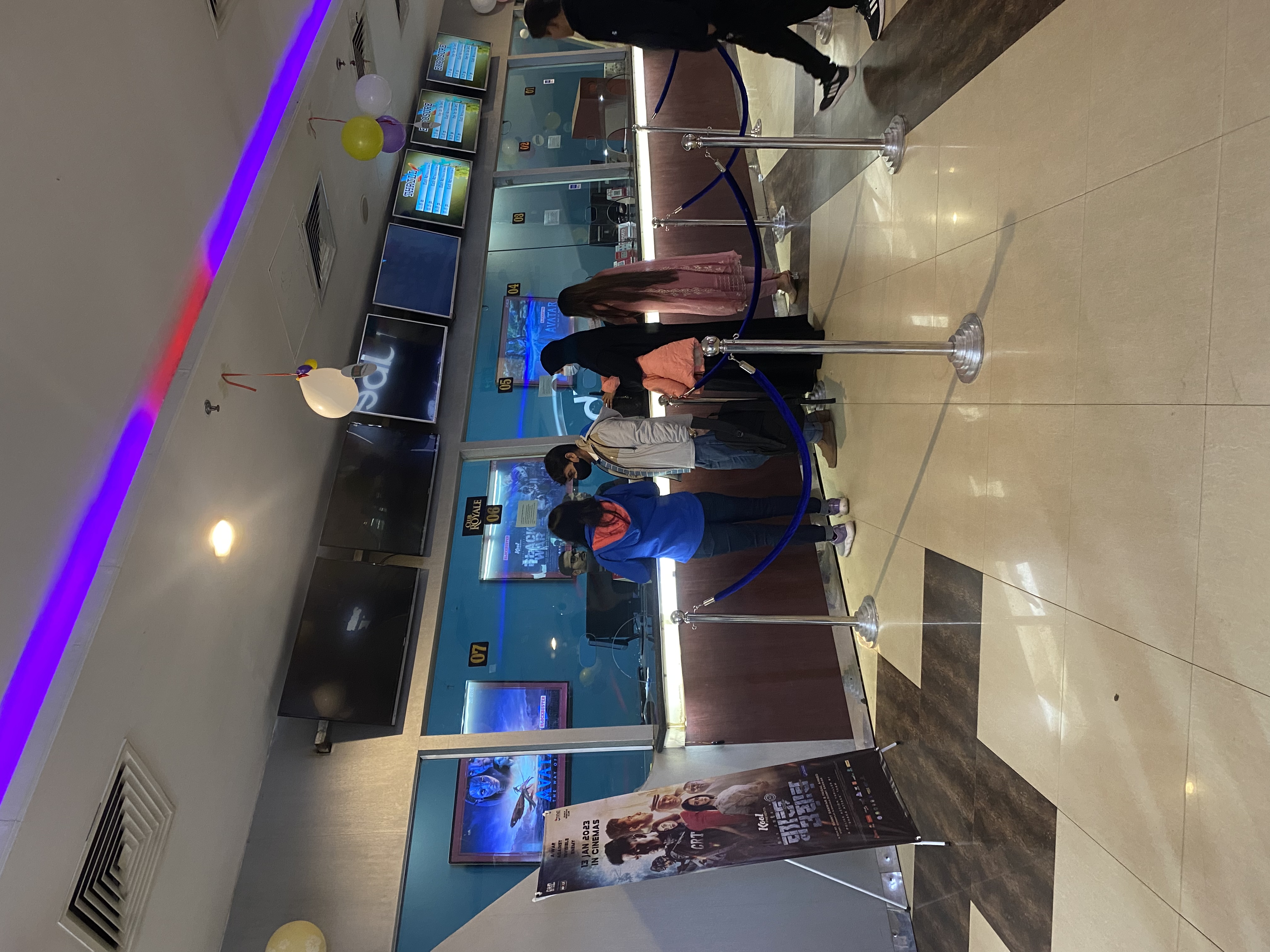 নিচের যে ছবিটি দেখছেন এটি টিকিট কাউন্টার। যদিও আমার হাসবেন্ড সকালবেলায় গিয়ে ৭ টা টিকিট কেটে নিয়ে এসেছিল। কারণ বিকাল বেলায় তাৎক্ষণিক গিয়ে টিকিট নাও পেতে পারি। এক একটা টিকিট ৫০০ টাকা করে। ছোট ছেলের জন্য একটি টিকিট নিয়েছিলাম। কারণ এত সময় কোলে বসিয়ে রাখা খুব কষ্টকর। কিন্তু ওর জন্য টিকিট নিয়ে খুব একটা লাভ হয়নি। ওর সিট ফাঁকাই ছিল। ও প্রথম হাফ কোলে ঘুমিয়েছে এবং দ্বিতীয় হাফ বাবার কোলে বসে সিনেমা দেখেছে।