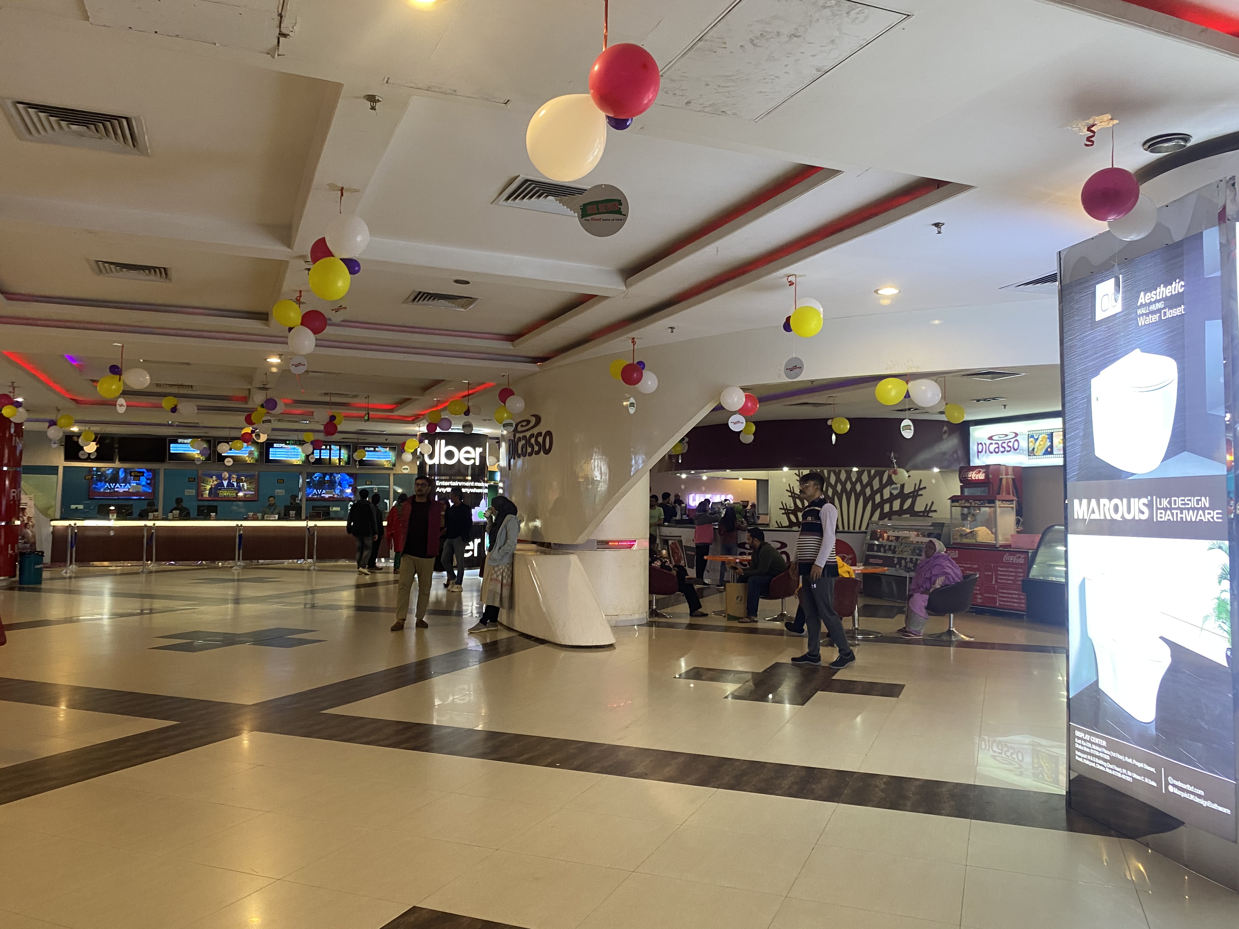 টিকিট দিয়ে ভিতরে ঢোকার পর খুব সুন্দর ডেকোরেশন করা ছিল। আমি অবশ্য বেশি ছবি তুলনি। ভিতরে যাওয়ার পর প্রথম হাফ দেখার পর আমরা বাইরে বের হয়ে খাবার কিনেছি। এখানকার খাবার খুবই এক্সপেন্সিভ। আমরা অল্প কিছু চিকেন এবং পপকর্ন কিনেছি। তাতেই দাম এসেছে বারোশো টাকা। আমার কাছে মনে হয়েছে দামের তুলনায় খাবার গুলোর মান খুবই খারাপ।
