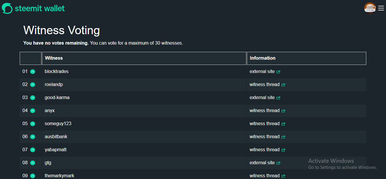 I go to the vote Witness page and check one by one. I want a witness who believes in staying Powered up 100 %