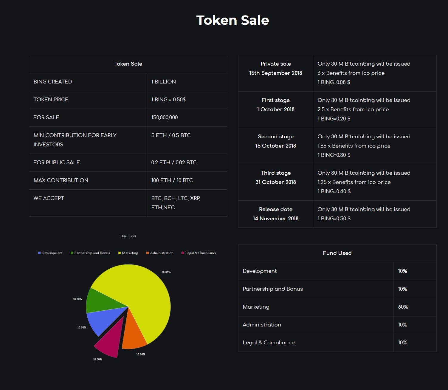 - Token Buyback Program: Bitcoinbing project has a very unique program that will continue to increase the value of the platform utility token. In every quarter, the exchange will use 50% of the trading fees to buy back and burn the Bing exchange tokens.