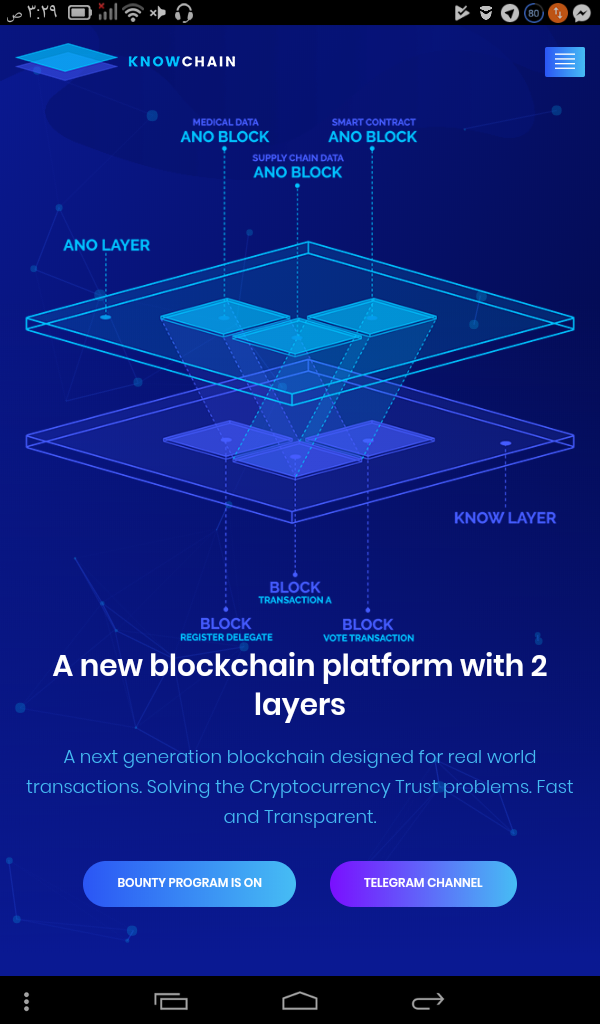 Knowchain is a two-layered blockchain platform that powers decentralized Applications and real world transactions by Smart Contracts and Additional Information attached on-chain.