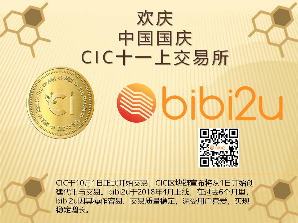 新一代区块链 CIC 区块链的代币在全球性加密货币交易所bibi2u上市