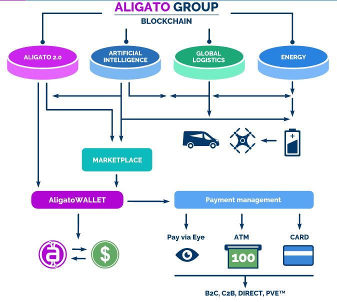 Aligato 2.0 is a multifunctional blockchain-based marketplace with an educational module, iris recognition identification and drone-powered delivery.