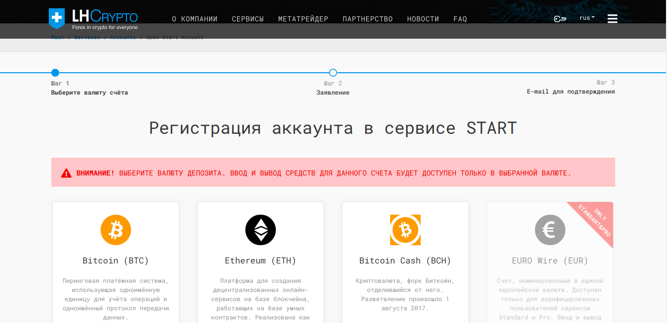 Чтобы зарегистрироваться на сервисе проекта LH-Crypto, необходимо пройти на его официальный сайт и нажать кнопку, которая открывает аккаунт.