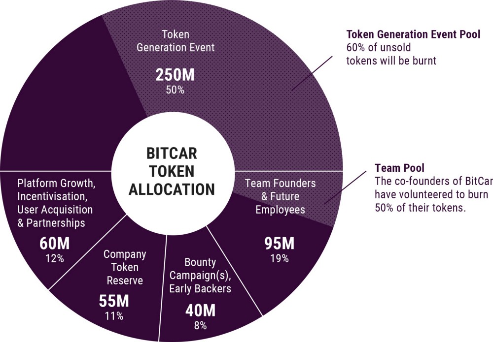 BitCar’s founders have volunteered for a token cut. Their combined allocated holdings will also be burned by approximately 50 per cent.