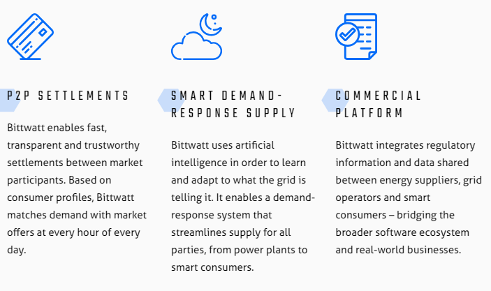 Bittwatt is a matchmaking platform that connects all market players (from DSOs to consumers) and provides a standardized blockchain protocol for sharing relevant business information, all the while creating a decentralized service for energy supply, billing and balancing.