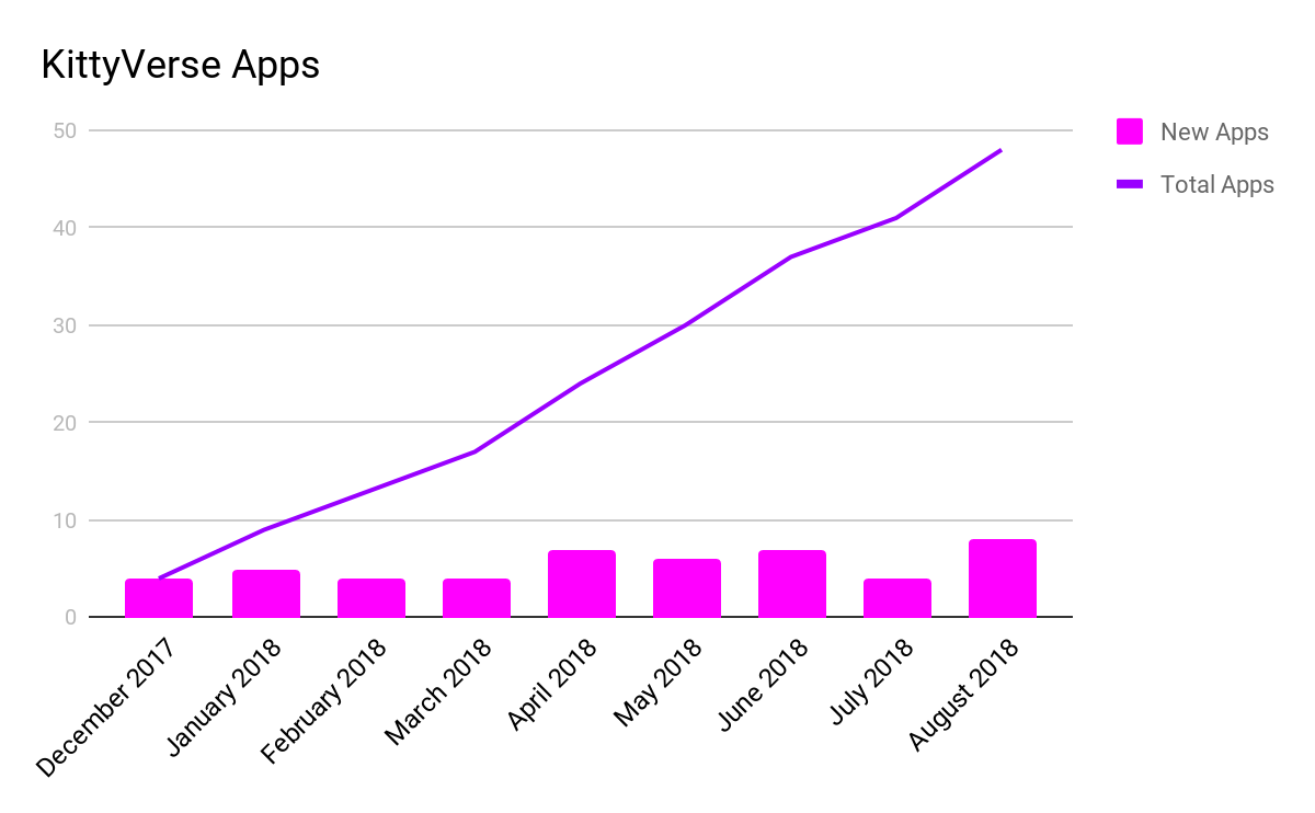 谜恋猫也希望能有更多开发者加入,在谜恋猫推出后的一个月内,就有十几个项目基于CryptoKitties.Earlier建立,今年早些时候,谜恋猫又推出了KittyVerse平台,为区块链领域的独立开发者提供平台和解决方案,截至目前谜恋猫已经发布了48个版本的KittyVerse,在Github上吸引了143人加入和3500+讨论,日均Api调用次数达到20000+。