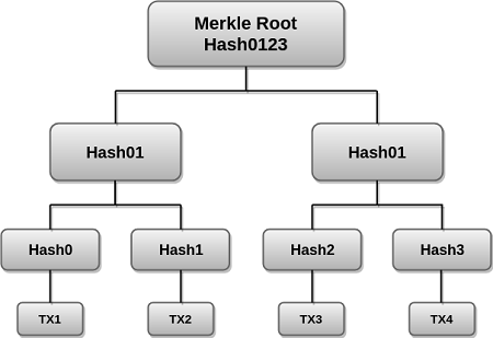 When new transactions are sent in the Bitcoin network, miners pick them up and consecutively hash them several times. As a result, we get one hash for all transactions in a block, and it’s called the Merkle root hash (and the whole structure is called the Merkle tree):