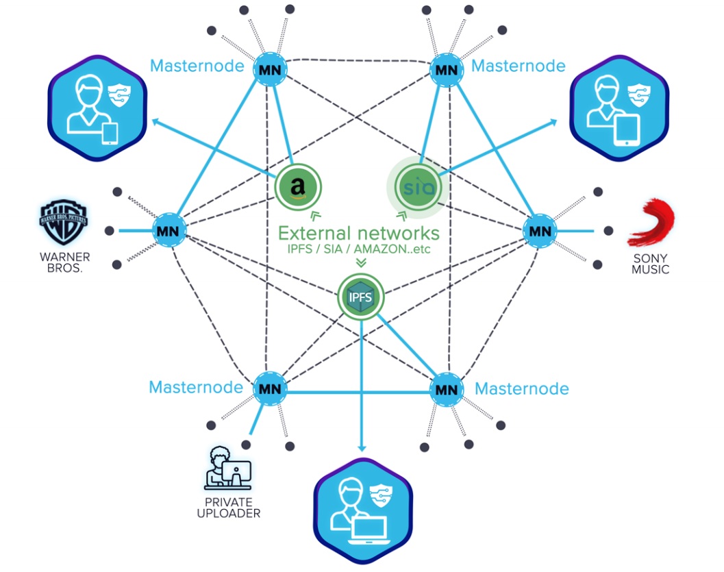 • Masternodes include the file location and receiver's public key on to the blockchain using an onion-based protocol like TOR network.