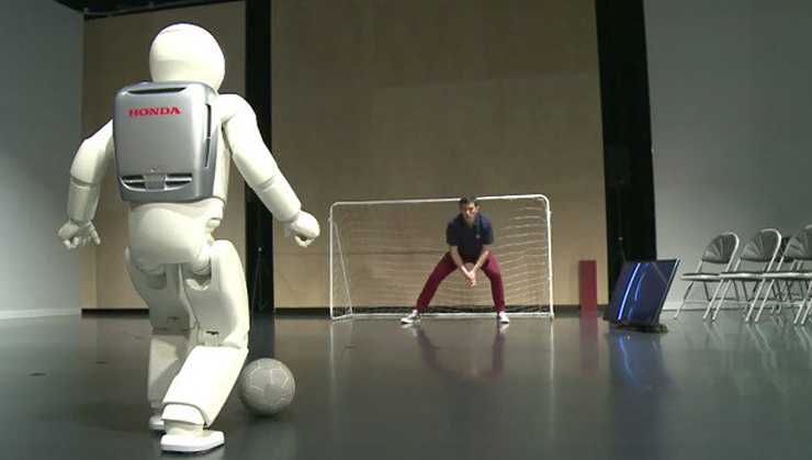 ASIMO robot, In 2000 Honda brought us ASIMO, which was designed to advance the mobility of robots, allowing it to walk smoothly and climb stairs. Newer versions of ASIMO were even able to run, turn, navigate uneven surfaces, map its environment, avoid obstacles, reach for and grasp objects and even recognize faces.