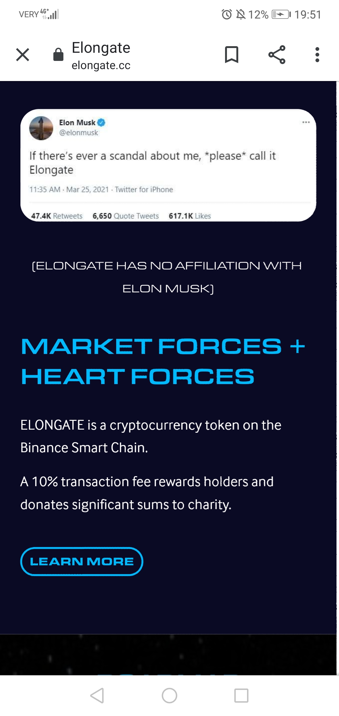 In a series of weekly live streams called charity parties with its tight-knit community of investors, Elongate has donated to charitable organizations including Children International, Action Against Hunger, and The Ocean Cleanup. On April 4, Children International accepted a first donation of $75,000, an amount which was increased to $325,000 in Elongate's latest charity party last April 18.