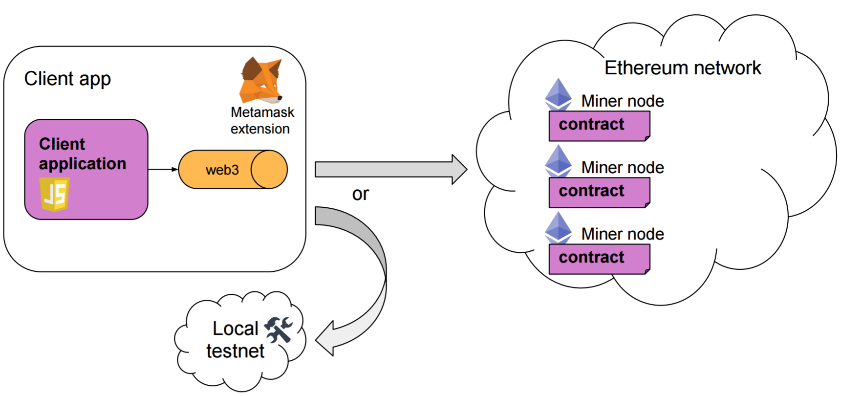 Ðapps enabled website: Front End → Smart Contract → Blockchain