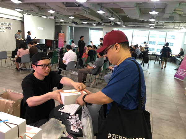 케이터링(meal box)를 참석자분들에게 전달하는 모습입니당:)