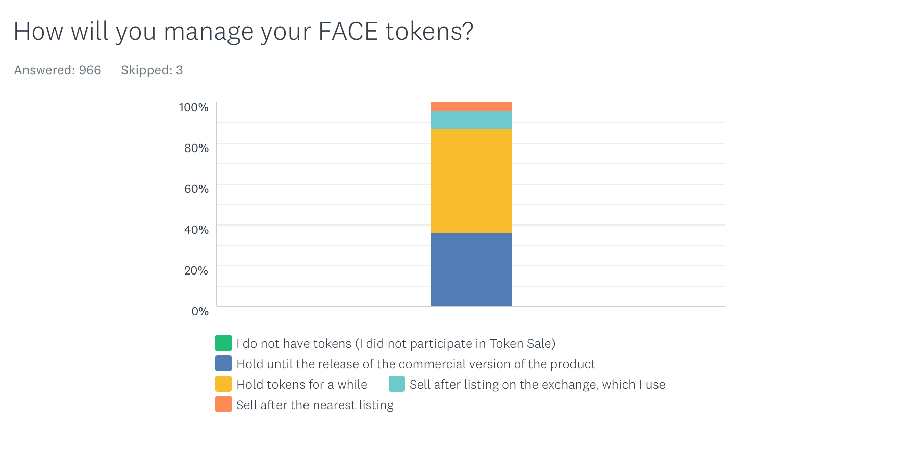 About 8.5% decided to sell the tokens on a convenient exchange. For you, we also have good news. The listing process will start in time, according to the results of the voting within the community. The process of intervening a token on other exchanges now is only a matter of concluding a series of agreements and a pinch of time. We seriously intend to present the FACE token on all popular platforms. We are sure your exchange is also on this list.