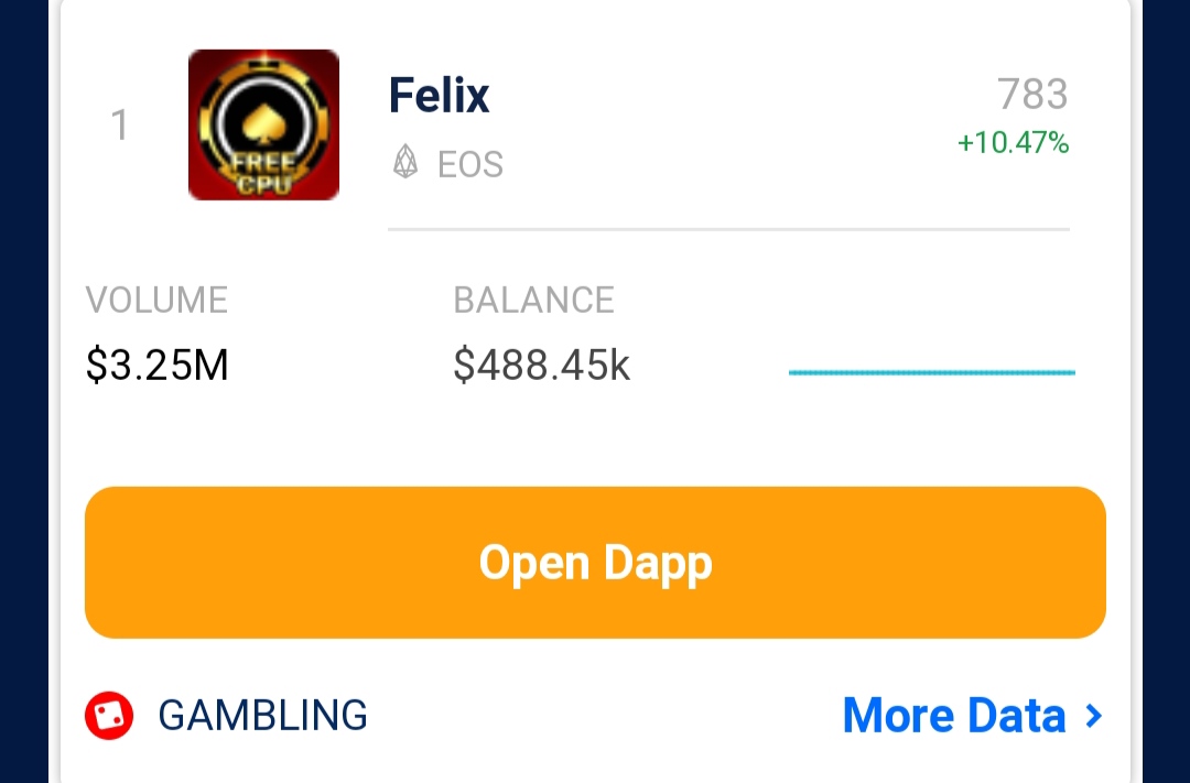 TOP 1felixofficial (25)in #blockchain • 6 years ago Felix Top 1 e osdapp from DappRadar #crypto #eosdapp #gambling #felix