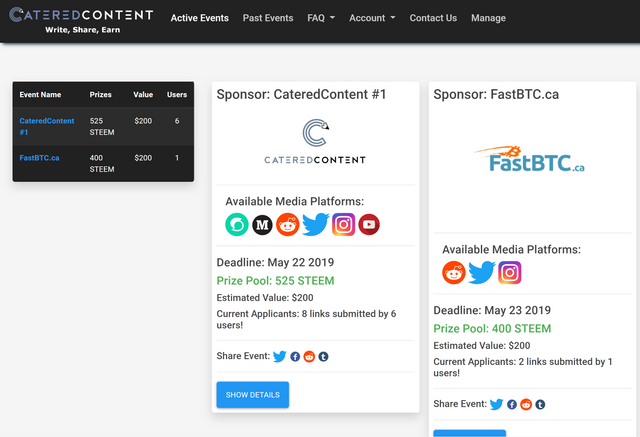 CateredContent is a platform that allows and helps many users to generate income with their publications, writing about topics of interest. CateredContent launches events and contests from time to time where users have the possibility to participate and win prizes, which are paid in their purses.