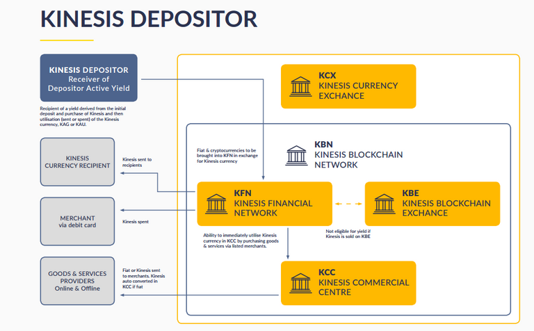 This system will help people invest their money in a cryptocurrency backed 1: 1 by gold and silver bars, respectively. The platform uses KAU (gold) and KAG (silver) tokens. The image below shows the flow of the Kinesis system: