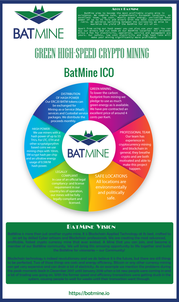 BatMine means to end up the most gainful crypto mine in presence. We consolidate safe, transcendently European areas, an astounding group, ease, for the most part environmentally friendly power vitality, the unrivaled hash intensity of up to 55 TH/s for our BTC excavators, and LTC mineworkers with the best cost/execution proportion. We streamline exchanging between the monetary standards we mine to expand the yield of the BatMine for us all. Aside from utilizing our hash control, you can likewise utilize your own! You can purchase our excavators and run them in our BatMine area. All returns less a charge for power, activity, administration and the executives are yours. Our wellbeing, minimal effort power, and the high hash rate will make your mining fundamentally progressively productive.