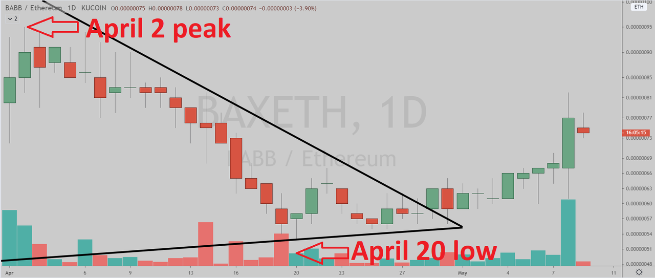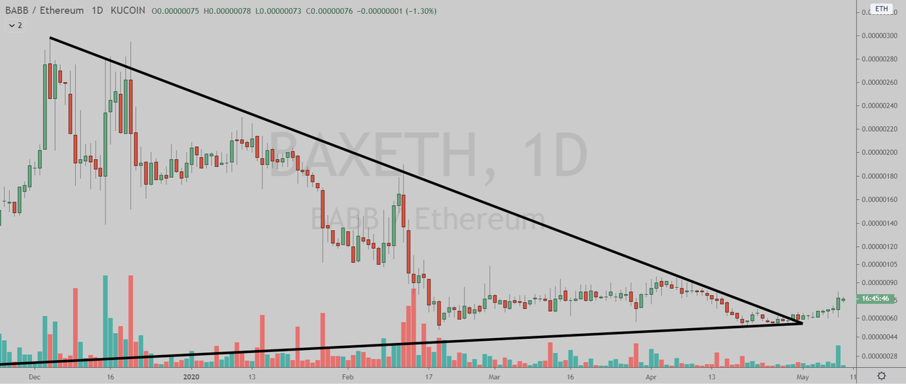 BABB (KuCoin: BAXETH) has broken out of the triangle pattern in the daily chart.