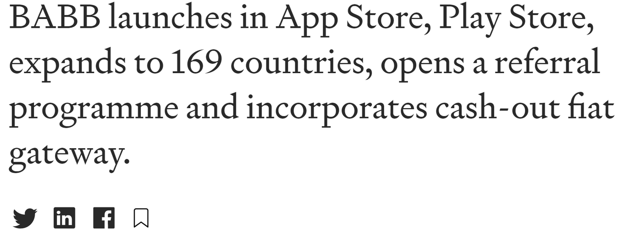BABB is using blockchain technology to bypass traditional banking networks and expensive 3rd parties to facilitate borderless fundraising and P2P transactions. You can read their latest newsletter here.