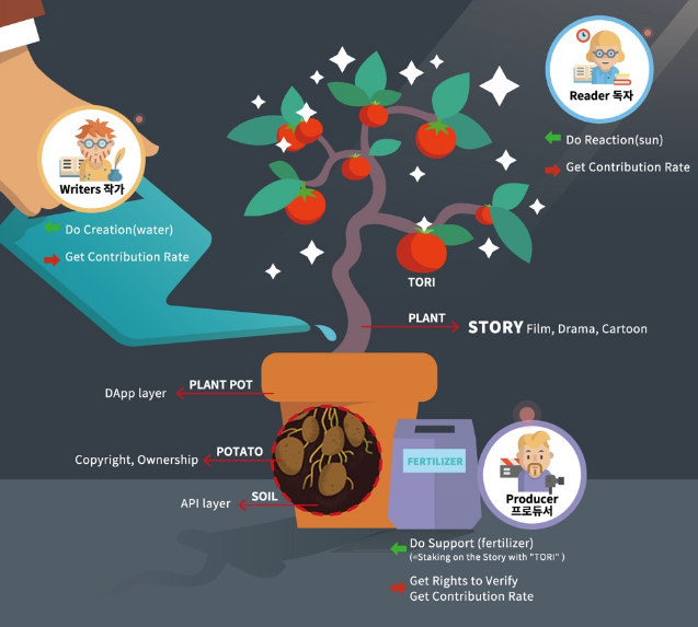 Storichain можно рассматривать как систему управления активами цифровых историй, которая позволяет людям совершать транзакции онлайн даже с ненадежными людьми, заключая «договор о предотвращении кражи идей». Еще одна проблема в отрасли - это проблема, связанная с разделением прибыли.Например, индустрия webtoon, которая является одной из крупнейших в Корее, основанной на сюжетах, уже превысила 700 миллионов долларов США по размеру рынка, но все еще есть много людей, которые сомневаются в структуре разделения прибыли в отрасли, а также во многих материалах. Создатели по-прежнему испытывают трудности с получением достаточной компенсации за свою работу.