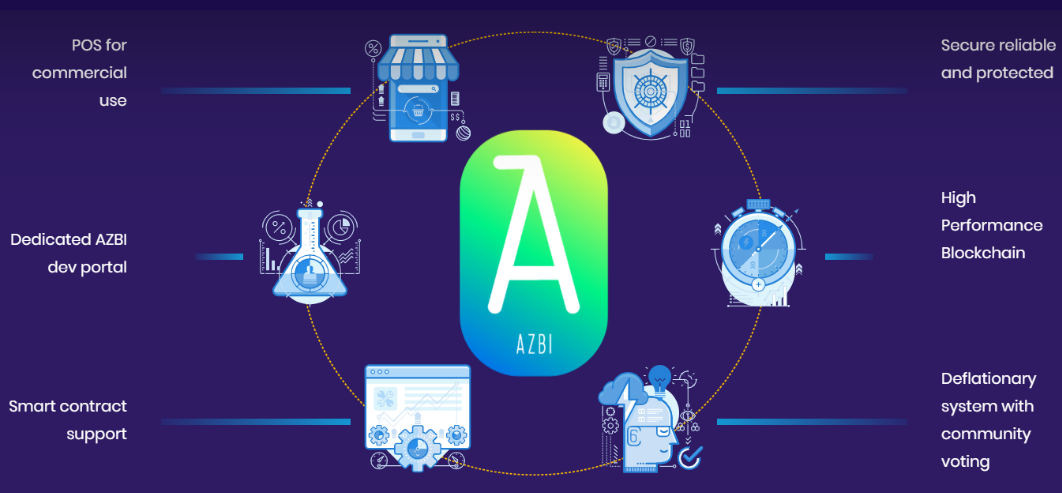 AZBI makes use of a unique deflationary system. The transaction of AZBI transferred is distributed as 1% is burned, 3% are transferred to the staking funds wallet, and 96% to the recipient. This transaction model ensures constant deflation and maintains the stability of the AZBI network.