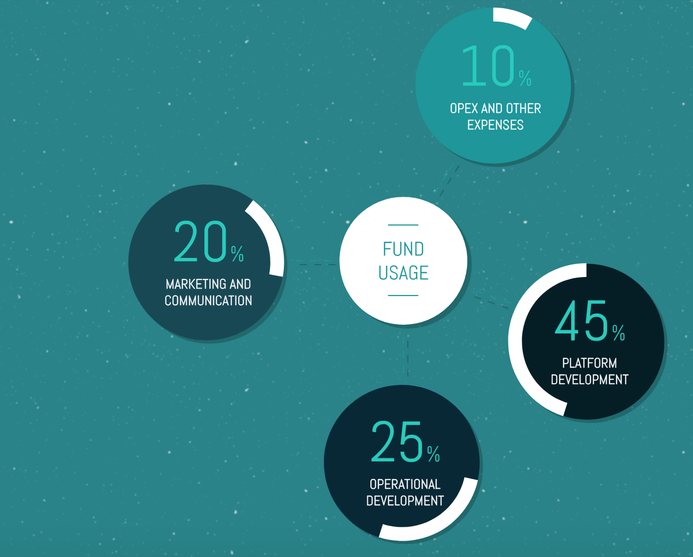 In total, the developers intend to collect Hard Cap in the amount of 35,000 ETH for further growth and development of their platform. That I think is not bad. Itself public sale token starts with 24.09.2018. All proceeds from the token sale will be distributed as follows: