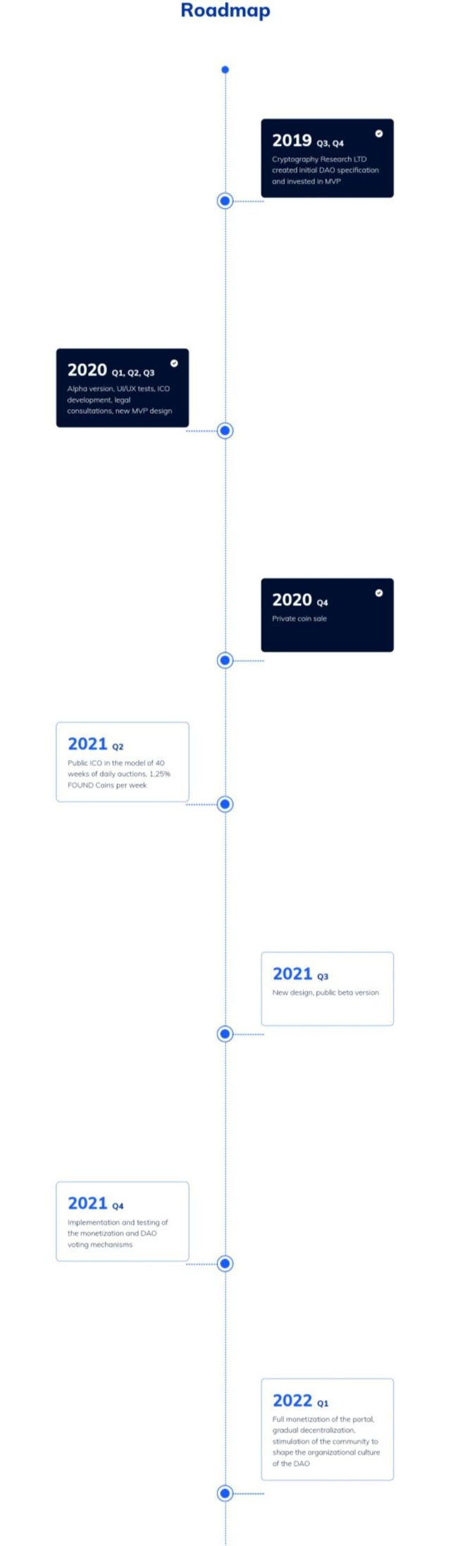 Issuer retains 15.5% of FOUND Coins; the company creates one of the editorial departments which will eventually be present on the decentralized Platform in the form of a DAO, and will also carry out ordinary publishing activities through the entity that performs this publishing; these FOUND coinswill allow issuers to participate in DAO votes and will provide Tokens for transactions done directly on the Platform.