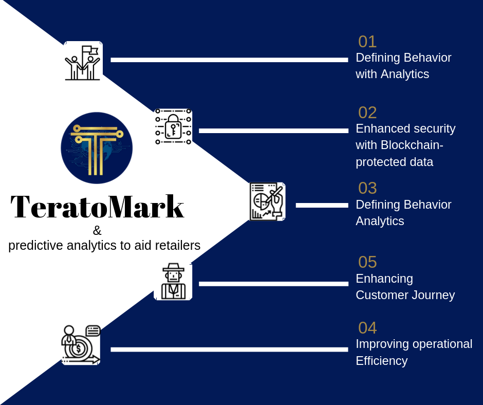TERATO is utilizing predictive analytics in its Blockchain marketplace to envision sales growth, predict future trends, consumer behavior, and predict larger market trends. Retail industry is producing more Data than ever before but most of their datasets didn’t transform in fruitful ways. Because of the excessive information and competition it has become difficult to transform and manage all information into unique insights that increases future sales, endeavors that are easier said than performed.