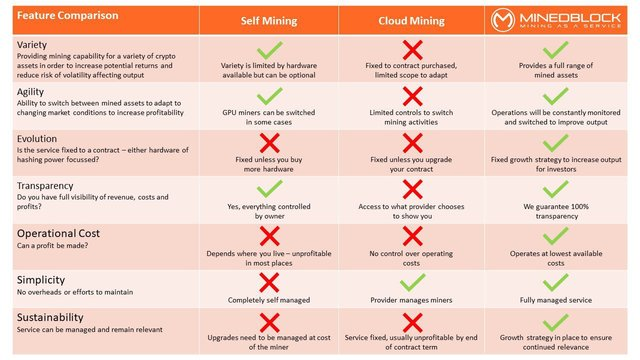 MinedBlock will utilize the usage of green electricity which is generated by green resources, this helps to create a profitable mining process.