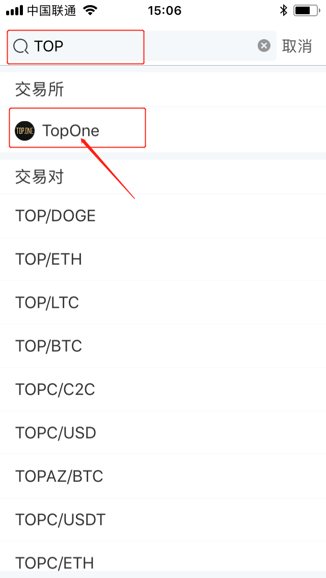 2、输入 TOP 或 TOP.ONE 搜索平台;