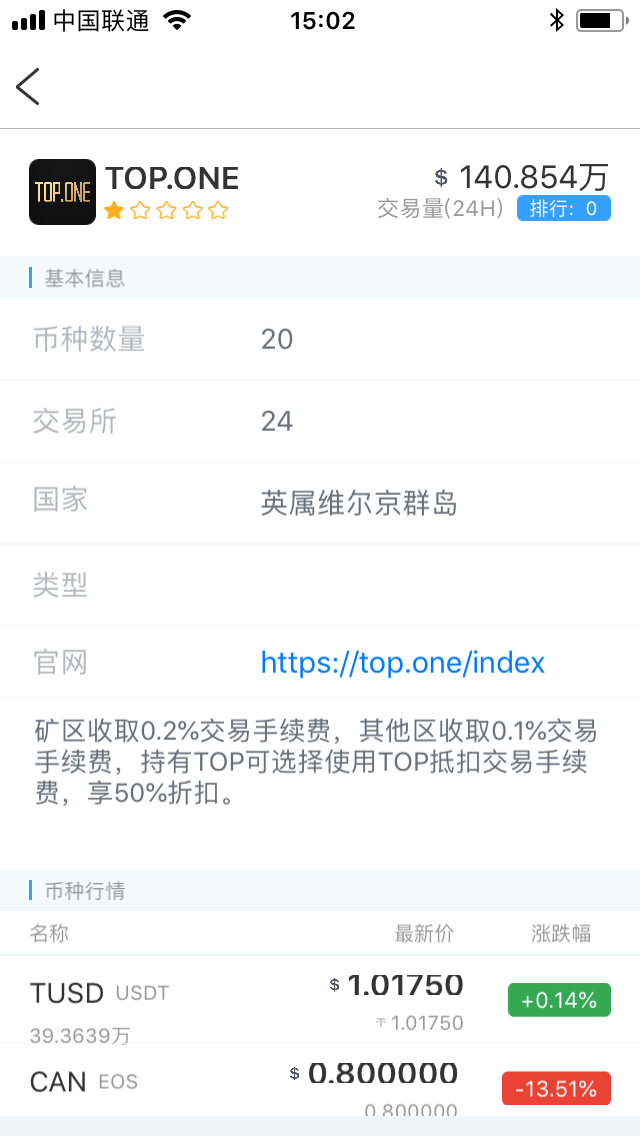 3、点击图示列表中第一位 TOP.ONE,即可查看币种详情啦~