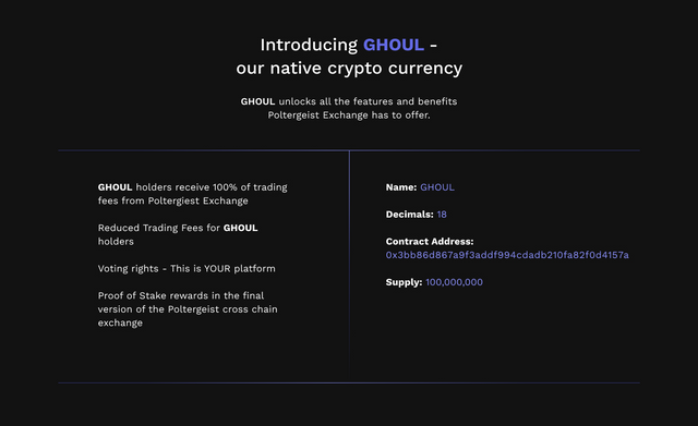 Poltergeist’s original crypto qurrency token, GHOUL is where the real magic happens, GHOUL holders receive 100% of the trading fee. Voting rights, future betting prizes more! so what are you waiting for, the opportunity is right in front of you this project is really great, I believe that this project will attract big market investment and can bring wealth redistribution for its investors. let’s join us and support this project until the end. Poltergeist is the best of all platforms!