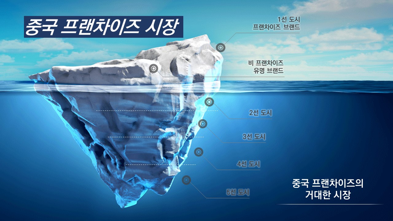 중국 상무부에 등록된 프랜차이즈 기업 수는 약 총 3200여개로, 지역별로 보면 1선 도시인 베이징과 상하이와 같은 중국 경제발전 지역과 인구밀도가 높은 지역에서 유명 프랜차이즈와 비 프랜차이즈 유명 브랜드가 프랜차이즈 산업의 주목을 받아 전체 도시의 1/3의 비중을 차지하고 있는 상태로 프랜차이즈 부문이 포화상태라고 할 수 있습니다.