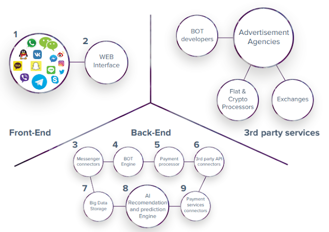 Artificial Intelligence Engine - The core of artificial intelligence systems, to create an optimal and mutually beneficial strategy for interaction between platform users. This will be a set of artificial intelligence algorithms that accomplish various tasks, ranging from intelligent chat-bots that can sustain dialogue with platform users and themselves learning, completing with "smart" recommendations for platform users about holding ad campaigns.