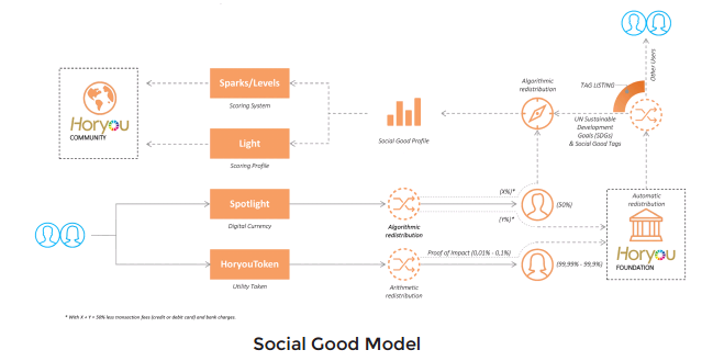 Horyou SAによってソーシャルネットワークと市場が維持されている間、プラットフォームとユーティリティトークンは分散されています。 同様に、HoryouTokensを開設し、HoryouTokenに含まれる慈善活動や社会的偉人への援助の一部を彼らに伝えるさまざまなプラットフォームで活用されます。 さらに、慈善事業を支援することを期待しているプラットフォームおよびFintechの割賦契約